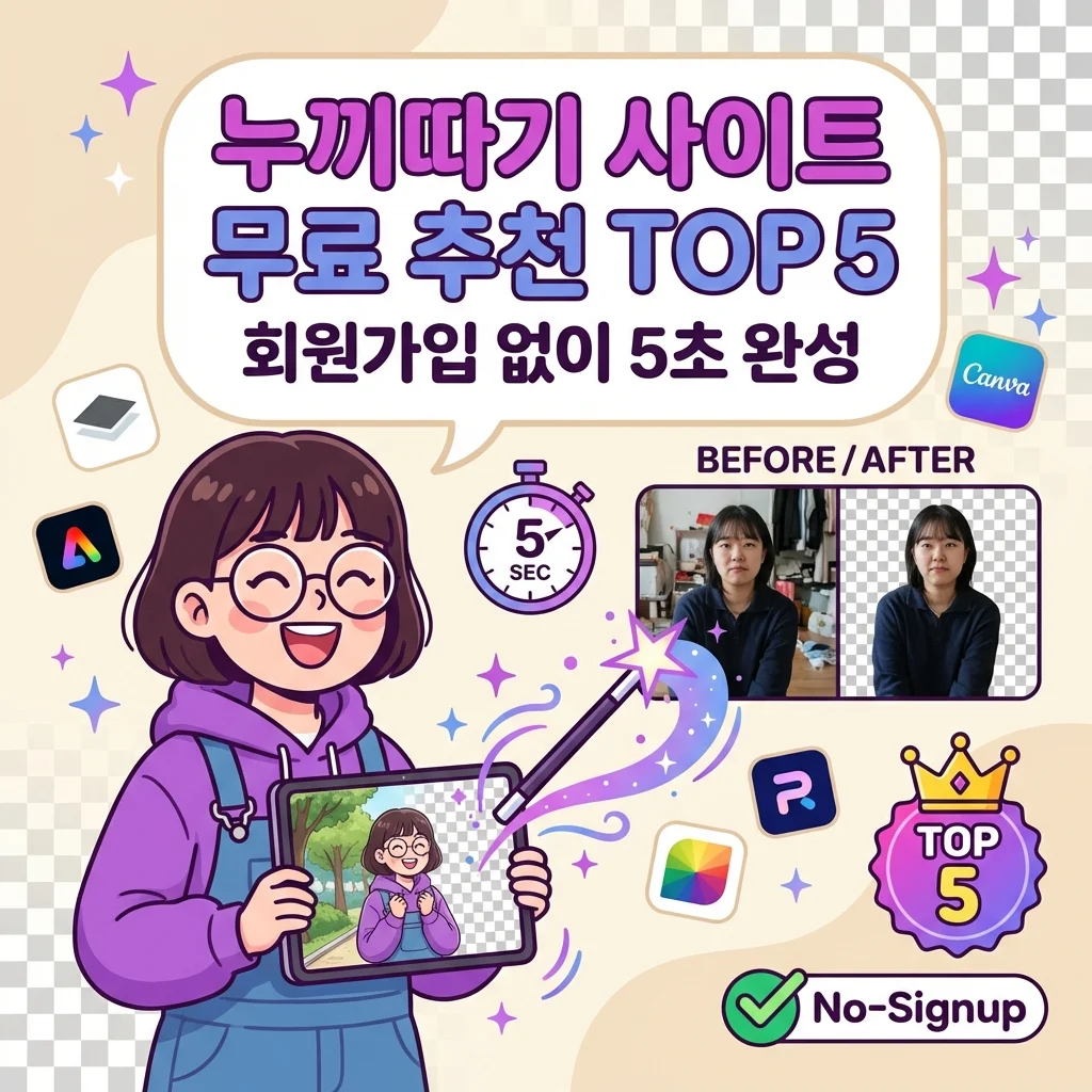 이 글에서는 회원가입이나 프로그램 설치 없이 바로 사용할 수 있는 무료 누끼따기 사이트 5곳을 소개합니다. 각 사이트의 장단점을 비교해 드리니 본인의 용도에 맞는 서비스를 골라보시기 바랍니다.