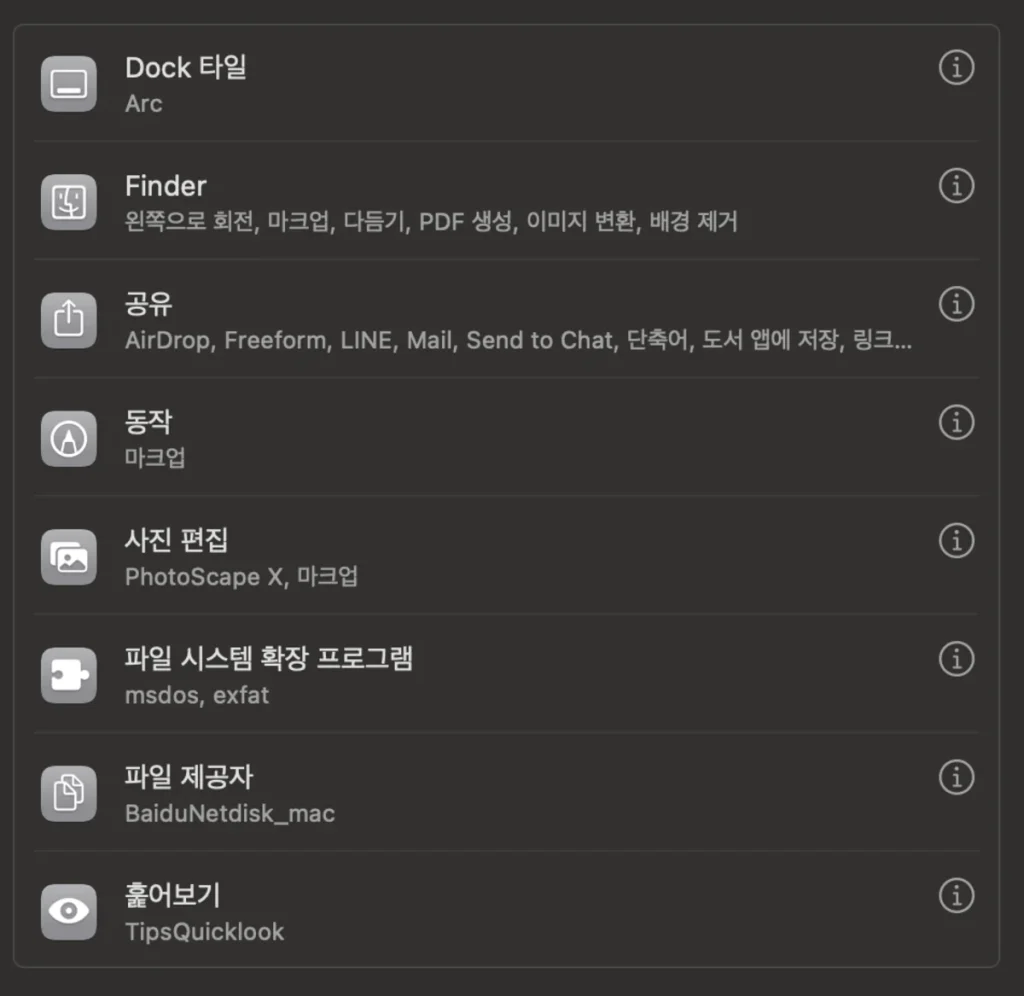 저 같은 경우는 타일정리 앱인 ‘Rectangle’ 이외에는 모두 제거 했어요.